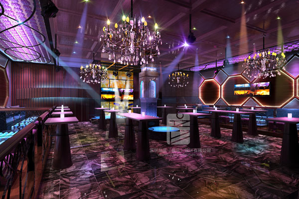 慢搖吧的設計有兩種模式,一種是以卡座為主的經營模式,DJ臺、領舞臺及舞池是全場的中心焦點,應安排在全場都能看到的醒目位置。為了豐富空間層次感,應設計適當的高低錯落,使空間充實多變并提高后面位置的視點,形成全場“聚”的氣氛。如果有中空二層的還應設置部分半層座位區,一、二層能通過樓梯與高中低區域連接起來,達到人氣連接、相互呼應的效果。如空間過高則需應用造型或其他功能將部分空間壓低,使空間既氣派,又感覺整體充實而盡顯人氣,容易達到“鬧”的氛圍。場內為了凝聚人氣,舞池無須太大。散臺、卡座、通道等空間距離應盡量緊湊。高級場所散臺不宜過多,且臺面宜用圓面透光材質。在慢搖吧發展較早及文化素質較高的城市,座位設計應較為開敞,便于互動。另外,座位設計須相對獨立,便于客人在大氣氛下有自娛自樂的空間。另一種是以散臺為主的經營模式,歌手帶動現場氛圍,客人站在自己位置上跳舞飲酒,不需設舞池,布局基本在一個平面上,不需太大的高低錯落,便于歌手與客人、客人與客人之間的互動,這種娛樂模式更接近于酒吧的模式,基本以時尚的年輕人為主要客源,將是慢搖吧以后發展的趨勢。