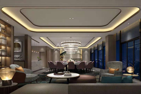 首先是色彩對酒店設(shè)計的影響,冷暖色彩具有一定的進退感,暖色使人感到靠近和向前,而冷色則使人感覺退遠和向后,因此,暖色調(diào)使空間看起來有縮小之感,而冷色調(diào)的空間看起來比原來略大。色彩的輕重感對酒店室內(nèi)空間的規(guī)劃也具有重要的意義。一般人的心理都有默認的穩(wěn)定原則,即上輕下重。色彩明度越高(即淺色)給人越輕之感,明度越低(即深色)則使人感覺越重。因此,在酒店室內(nèi)設(shè)計中,一般多遵循上淺下深的原則。