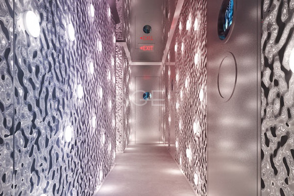 包間的細節設計,主要體現在前后的屏幕、以及與之相呼應的立麥臺,可以讓包間內的人互動起來。在KTV設計中,要做好包房的隔音處理,隔音處理不好,整個KTV的環境會比較雜亂,好的隔音能體現出很完美的音質,很舒適的環境,大廳、走廊等功能區也不會受影響。KTV內的燈光元素很關鍵,燈光的明暗、色彩和光線,可以創造出多種組合光線,起到描繪、渲染的作用,燈光既可以解決空間內的基本照明,也可以營造特有的氛圍。